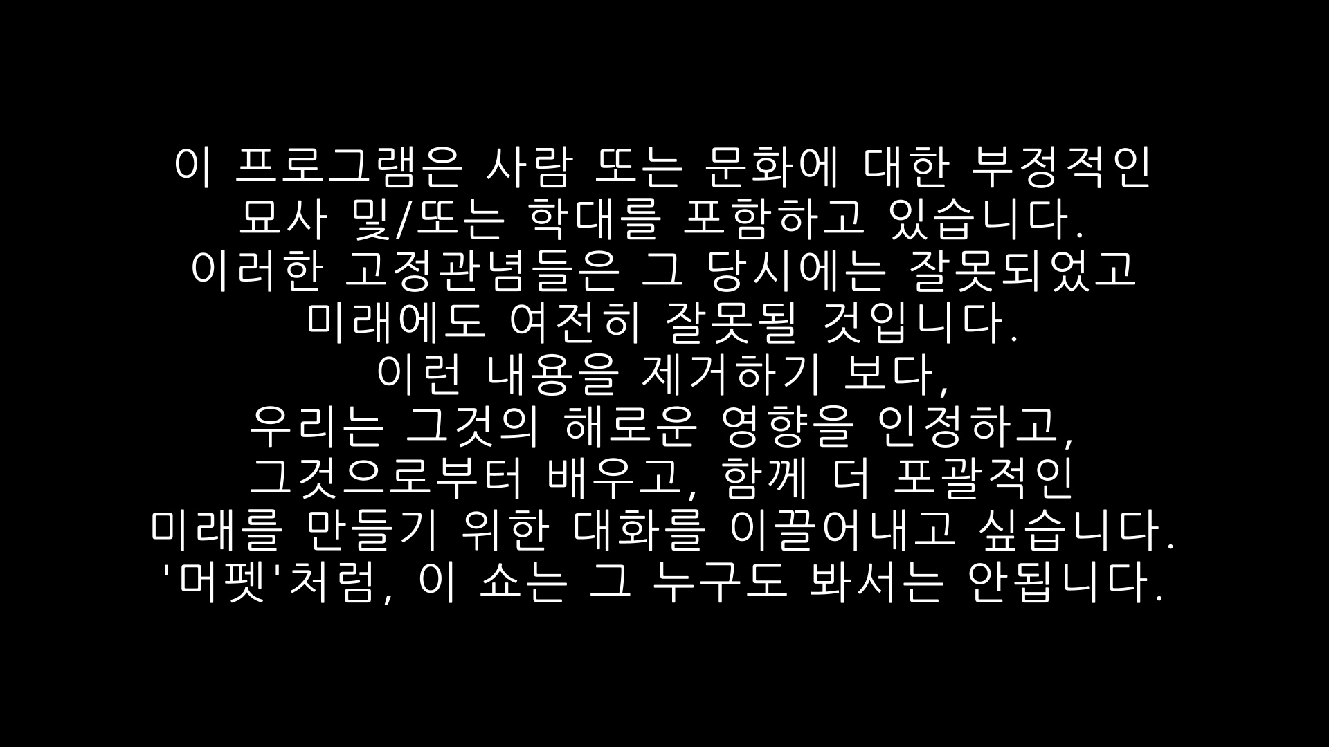 경고문이 완전히 달라서 그거 살려보려고 처음으로 ASS 자막 도전해봤는데, 익숙하지 않아서 그런지 기본 스타일 설정하는 게 좀 번거롭긴 하네요.