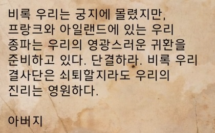 하지만 결사단이 몰락한 건 아니였습니다. 아직 아일랜드와 프랑크에도 세력이 남아 있으며, 무엇보다 전대 그랜드 마제스터인 알프레드도 살아 있으니까요. 오히려 독실한 기독교 신자였던 알프레드는 고대 결사단의 이수 신앙을 영지주의 이단으로 여겨 그들을 말살하고 처음부터 새로 시작할 작정이였습니다.