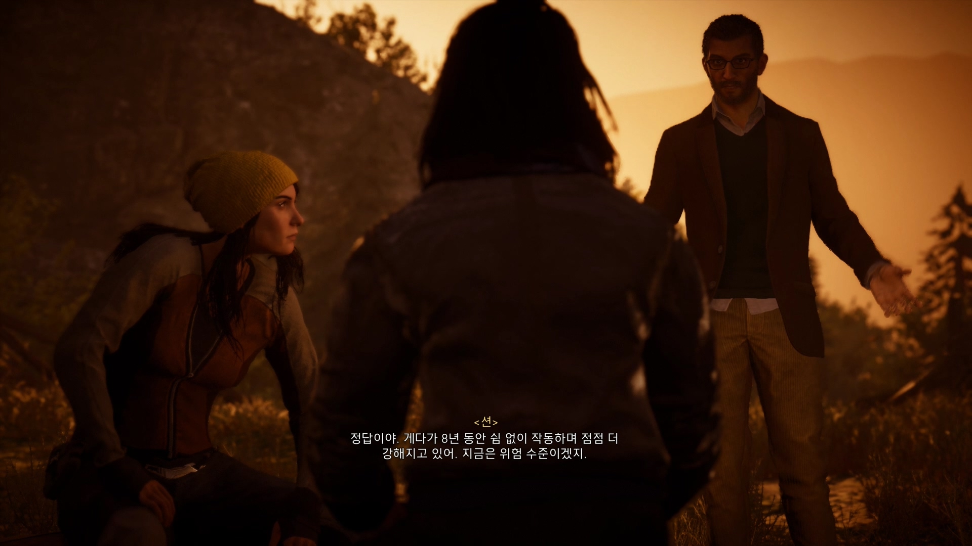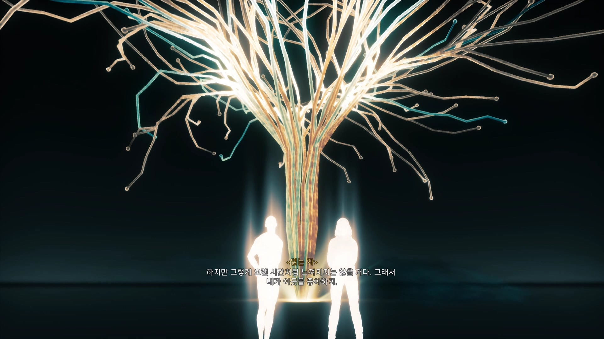 모두가 사라진 시뮬레이션 속에서 레일라가 보게 된 건 빛나는 나무와 열심히 무언가를 계산하는 이. 스스로를 '읽는 자'라고 밝힌 그의 정체는 바로 데스몬드의 의식이였습니다. 다만 이건 플레이어만 아는 사실이고 레일라는 모르죠.